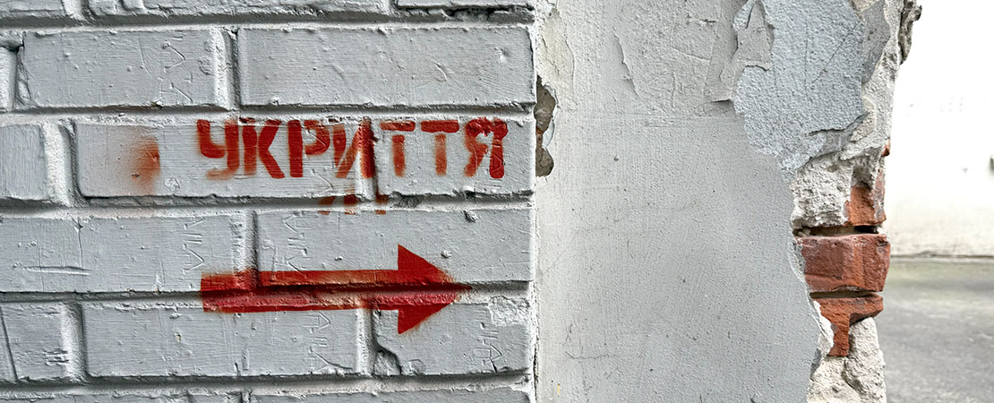 Pilen pekar mot ett skyddsrum i Kiev. Foto: Christina Jarnlid, MCF