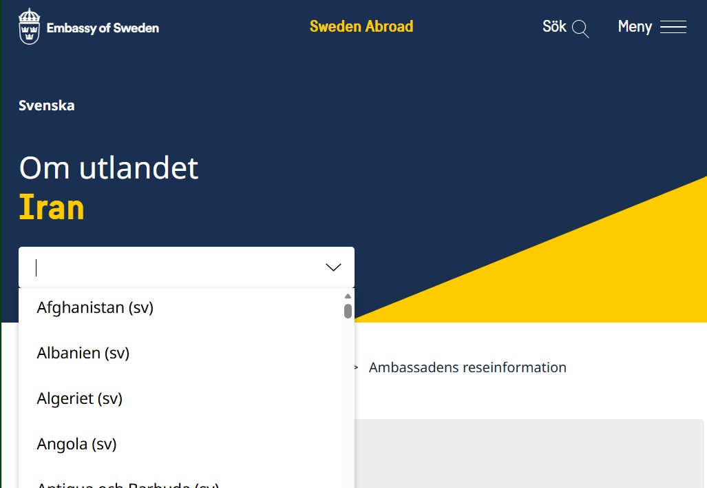 OBS att situationen i olika länder kan ändras snabbt, och den här sidan kanske inte uppdateras så fort något ändras! Därför är det viktigt att svenskar i dom krigsdrabbade länderna håller koll på ambassadens information. Gå in på appen UD Resklar, eller på ambassadens hemsida. Du kan välja land på startsidan.